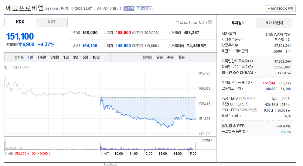 에코프로비엠은 단기적으로 어려움을 겪고 있지만, 전기차 산업이 다시 성장 궤도에 오르면 가장 먼저 반등할 가능성이 높은 기업 중 하나입니다. 2차전지 산업의 본질적인 성장성이 유지되는 한, 이 회사는 꾸준히 주목받을 거예요. “지금은 조정, 하지만 본질은 여전히 탄탄하다.” 이 한 문장으로 요약할 수 있습니다.