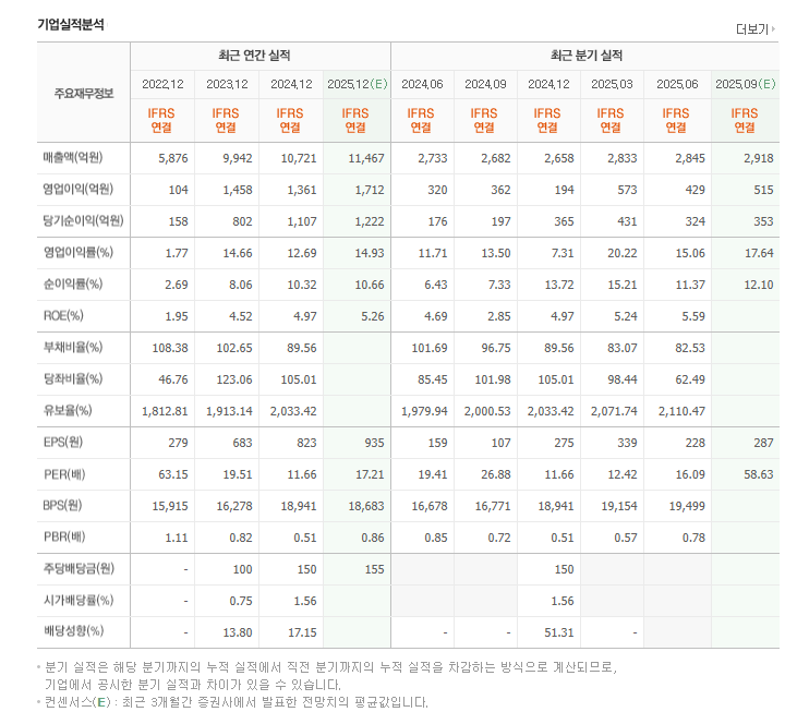 최근 2년에 걸쳐 매출이 두 배 가까이 증가하며, 영업이익률도 1%대에서 14% 수준까지 상승했습니다. 이는 단순한 일시적 회복이 아니라 구조적인 수익성 개선으로 볼 수 있는 지점입니다.
